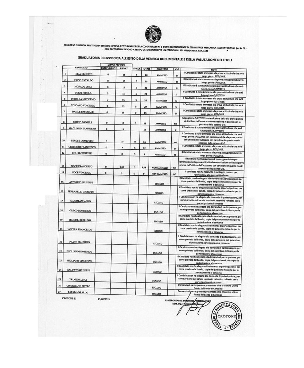 Ecco la Graduatoria Provvisoria all'esito della verifica documentale e della valutazione dei titoli: