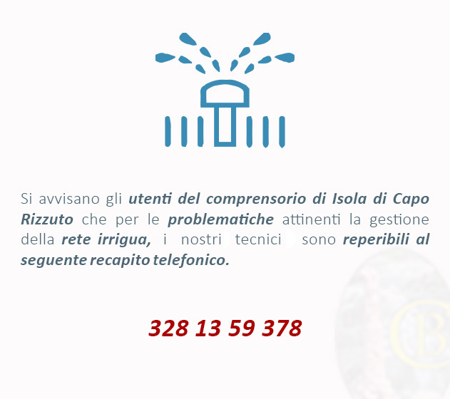 Altopiano di Isola Capo Rizzuto: Causa improvviso cedimento strutturale del torrino in agro del comune di Cutro, siamo stati costretti a procedere alla totale sospensione della fornitura di acqua grezza. Tecnici ed operai sono già al lavoro e presto comunicheremo i tempi di intervento e di ripristino del servizio idrico per...