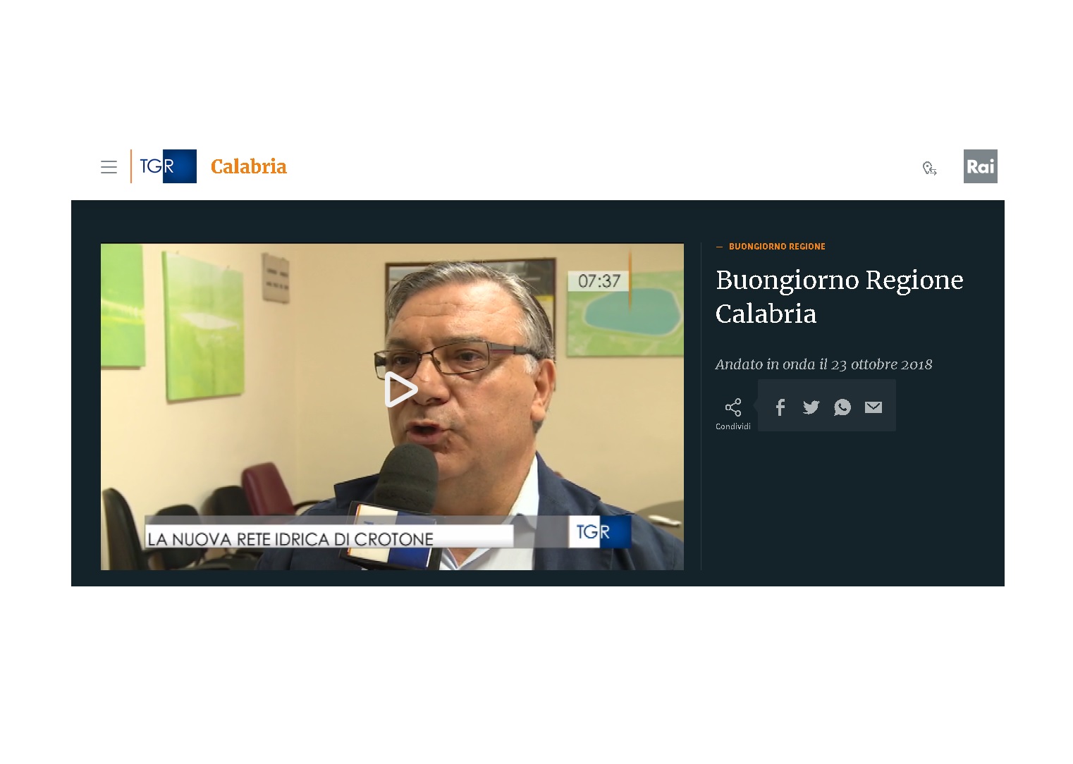 Con riferimento ai lavori di ristrutturazione ed adeguamento della rete irrigua della Bassa Valle del Neto (ed in specifico al necessario collegamento dell’adduttore al partitore idraulico di Timpa del Salto nel comune di Belvedere Spinello) già nella giornata di ieri è stato comunicato agli enti interessati (Sorical, Congesi,...