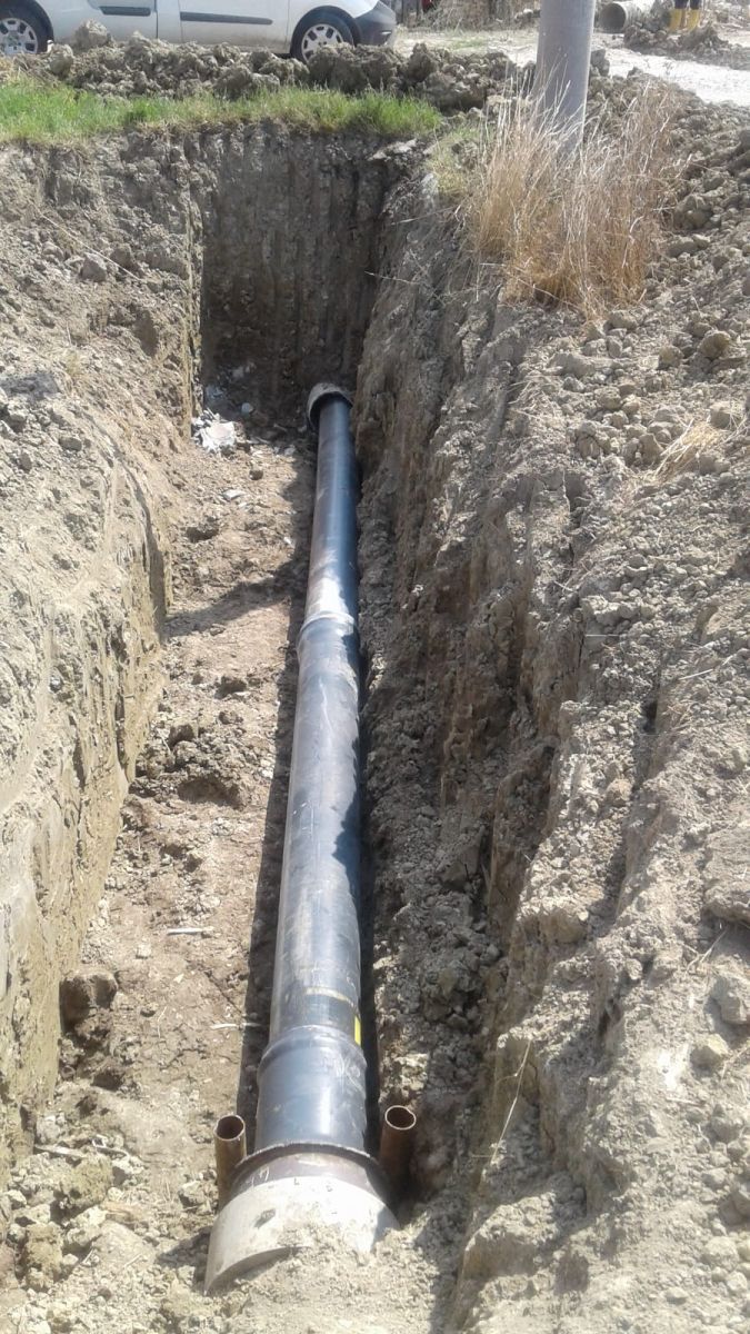 Terminato a Trafinello, nel comune capoluogo, attraversamento di strada comunale con tubo in pvc DN 350 in tubo in camicia.